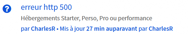 Hébergements Starter, Perso, Pro ou performance - erreur http 500