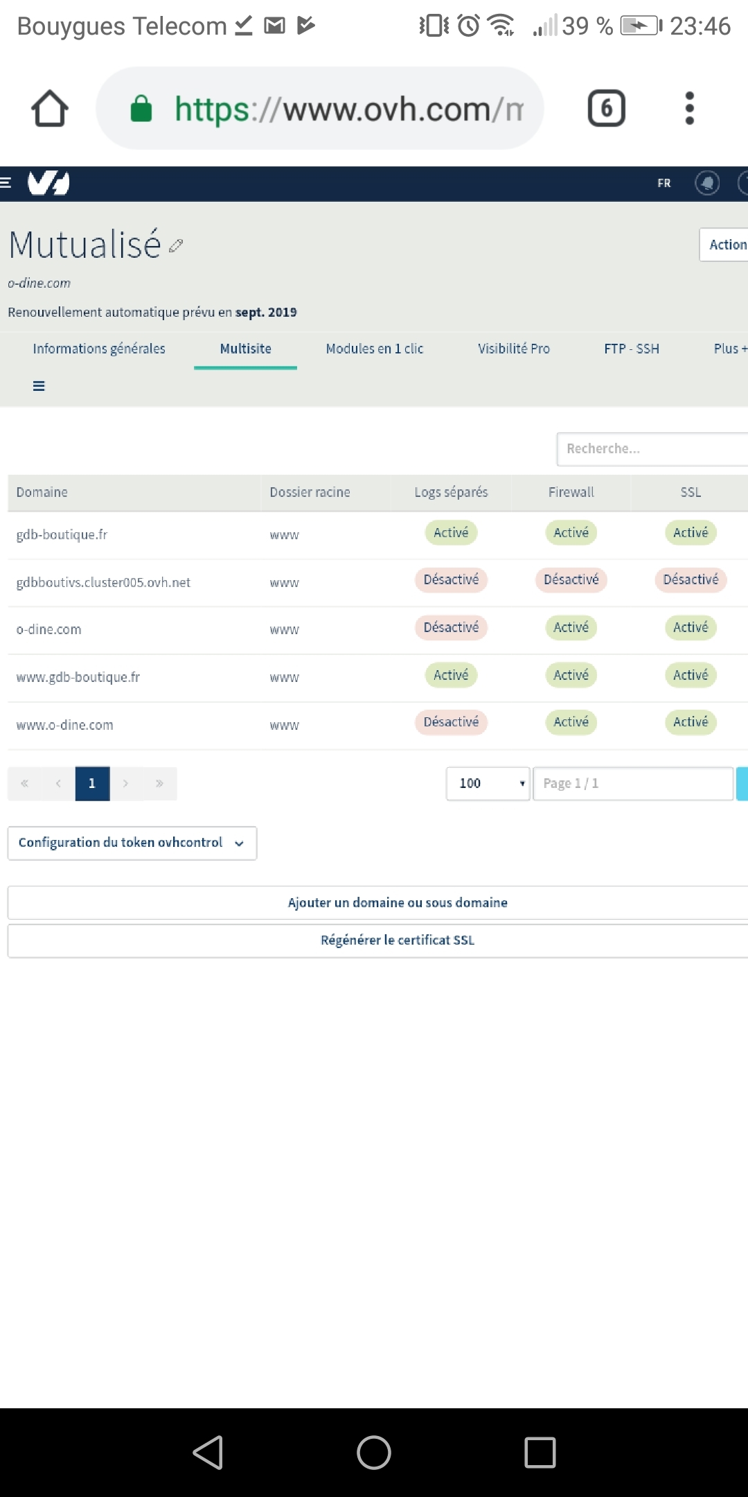 J'ai fais pointer o-dine.com vers mon hébergement mutualisé où gdb-boutique.fr est déjà présent mais malgré cela je ne peux pas faire de changement de domaine principal sauriez vous pourquoi ?