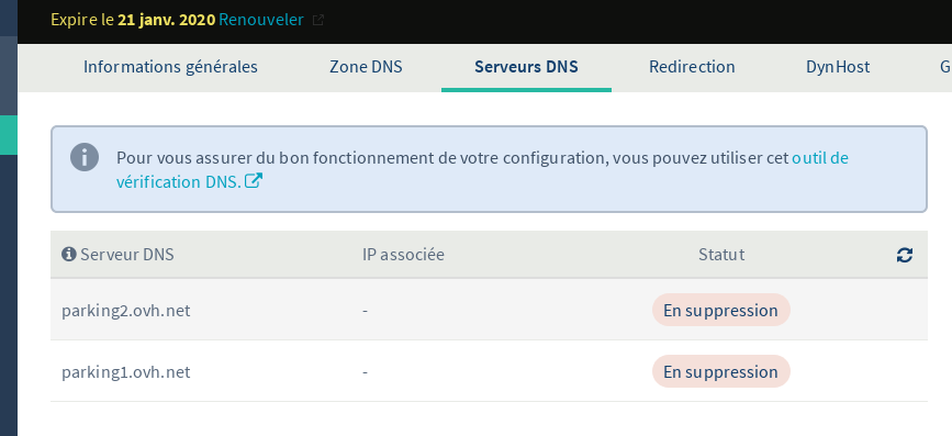 Ca y est probleme résolu en contactant un intervenant sur le chat du support : il y avait un probleme de déclaration coté OVH.