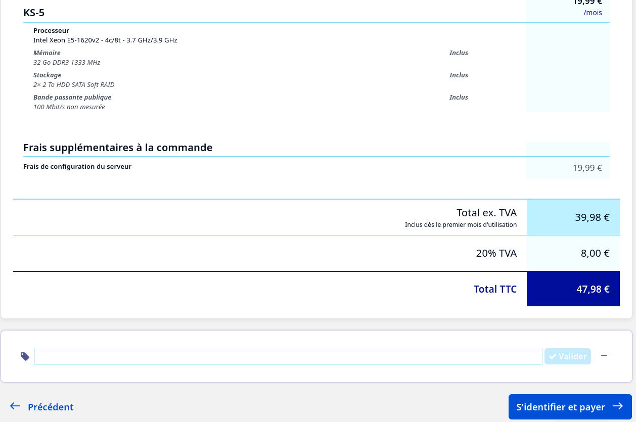 - le coupon n’est valable que sur la 1re commande et pas cumulable avec des promotions. N’aurait-il pas été plus juste de donner une réduction à vie sur le prochain serveur vus les problèmes qu’on va rencontrer ?