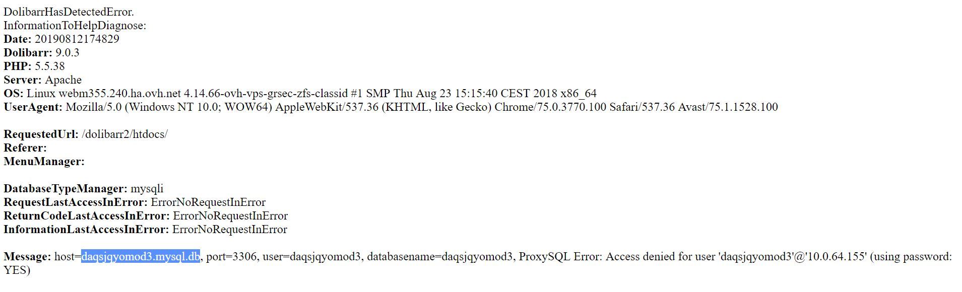 Depuis la migration de la DC Paris d'OVH, j'ai changé le mot de passe communiqué par OVH via PhpMyAdmin et dans le fichier conf.php de Dolibarr, mais problème de connexion pour PhpMyAdmin et Dolibarr.