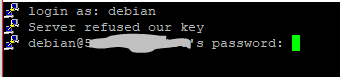 Mon problème ; Je n'arrive absolument plus à me connecter en SSH sur mon instance. J'ai recréé mes clefs (depuis Putty), mais à chaque fois le serveur me demande mon mot de passe juste après avoir renseigné le login (debian dans mon cas).