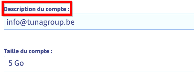 Je confirme que "description" est un champ libre et pas destiné à recevoir l'adresse mail du compte