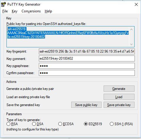 J'ai ouvert putty Gen, généré les clés ED25519 (il semblerait que ce soit le plus sécurisé)
