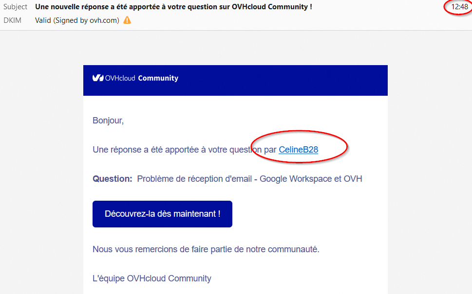 Problème de réception d'email - Google Workspace et OVH
