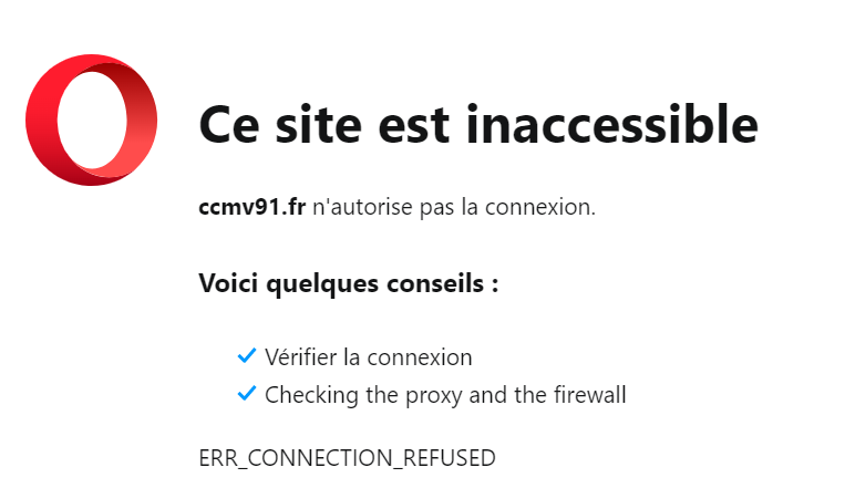Depuis, l'accès est OK sur http://ccmv91.fr">ccmv91.fr