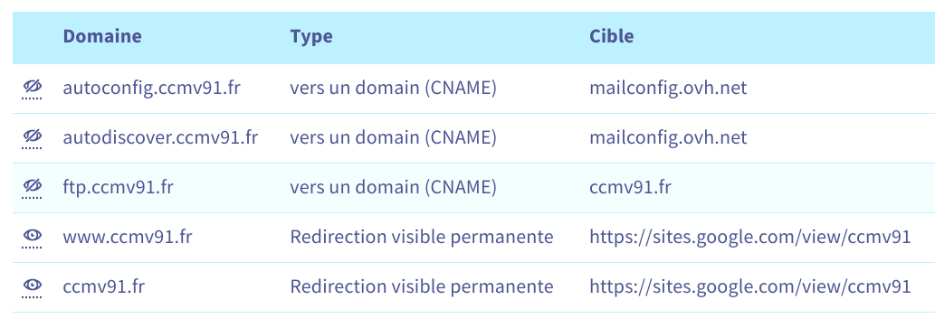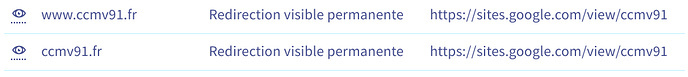 Bonjour, est-ce que vous avez un hébergement chez Google sites qui fait correspondre votre site hébergé chez eux au nom de domaine ccmv91.fr ?