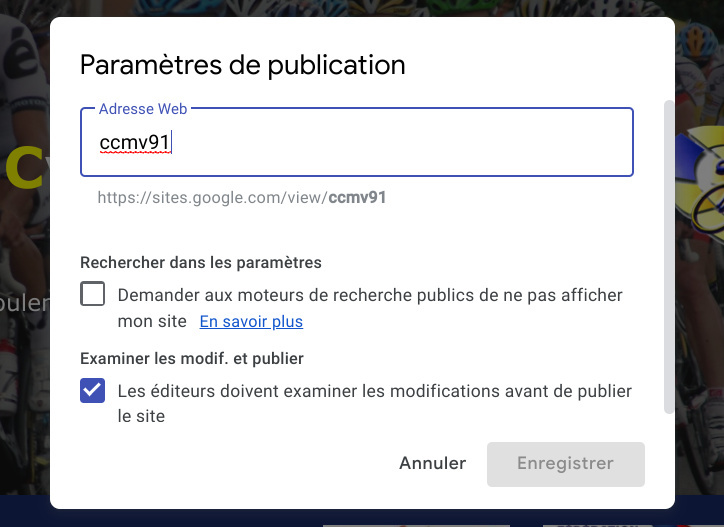 Par contre dans google sites dans les paramètres de publication, j'ai ça