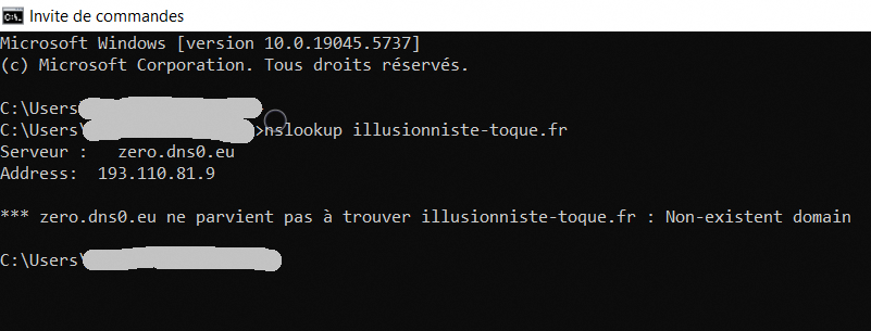Néanmoins, après redémarrage de ma box, je ne constate aucun changement concernant http://illusionniste-toque.fr/ : les mêmes messages d'erreur sur les 2 navigateurs quand je me rend dessus.