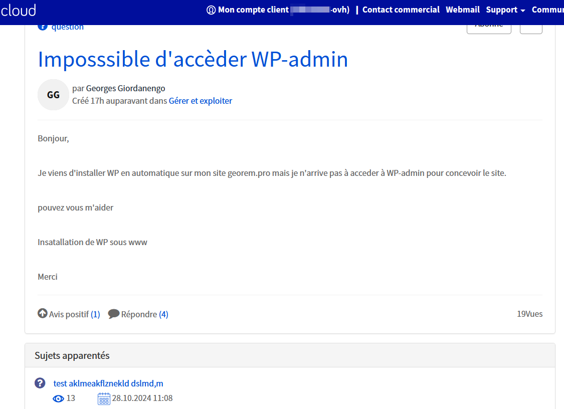 Bonjour @fritz2cat C'est ce que j'ai signalé dans une de mes réponses pour le sujet : Améliorations du forum en cours de déploiement de la part d'OVHcloud