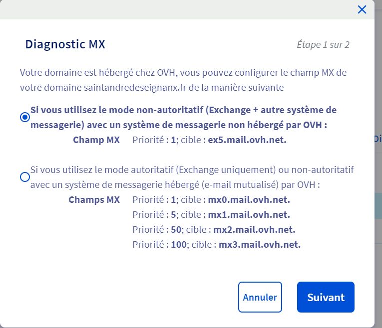 Je souhaiterais migrer 5 messageries sur 10 de MXPLAN vers hosted EXCHANGE,