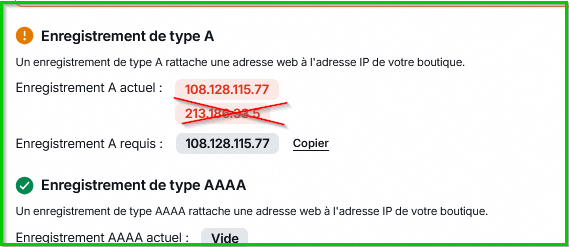 Un enregistrement de type A rattache une adresse web à l'adresse IP de votre boutique.