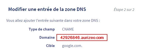 J'ai une redirection de mes mails vers google workspace. Depuis quelques temps je n'accès plus à mon compte admin sur google workspace. Le support google me dit qu'il faut ajouter un enregistrement CNAME à ma zone DNS :
