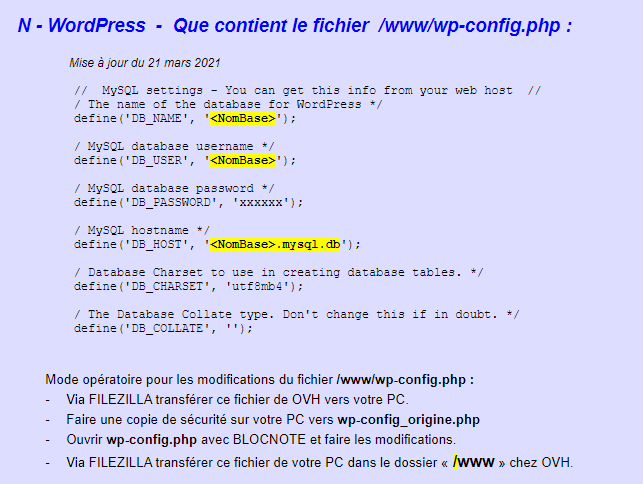 **N - WordPress - Que contient le fichier /www/wp-config.php :**