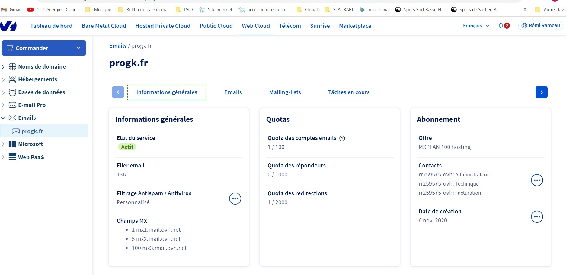 J'ai un site internet www.progk.fr et une boite mail associée ***@progk.fr