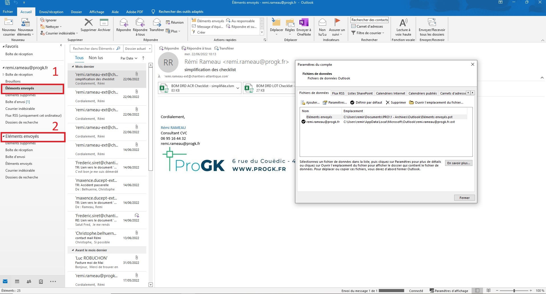 A priori jusqu'à fin Mars mes mails allaient dans le dossier "Eléments envoyés" en local sur mon PC puis jusqu'au mois de Juin (22/06) ils allaient dans le dossier "Eléments envoyés" habituel de Outlook. Ca me parait bizarre tout ça je vais essayer de fouiner.