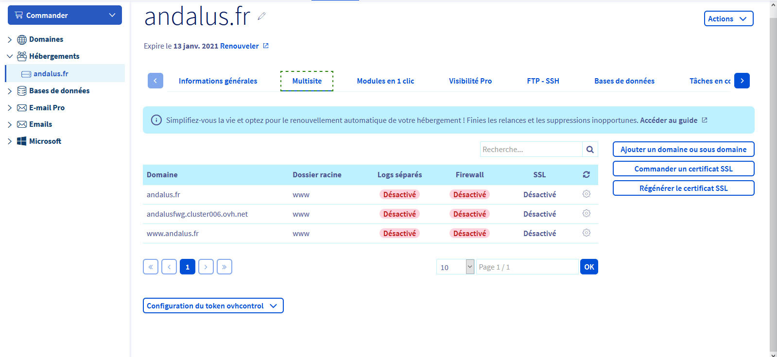 on peut voir une copie d'écran de manager Ovh/hébergement/multisite?