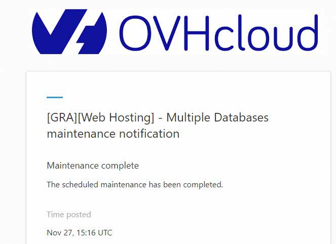 [GRA][Web Hosting] - Multiple Databases maintenance notification