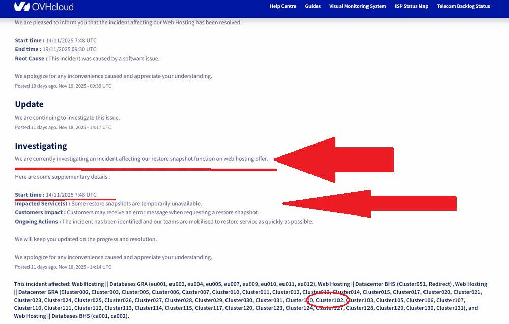suite à Restauration J -1 du 15 novembre 2025 plantée à cause de cet "Incident" officiel chez OVH.