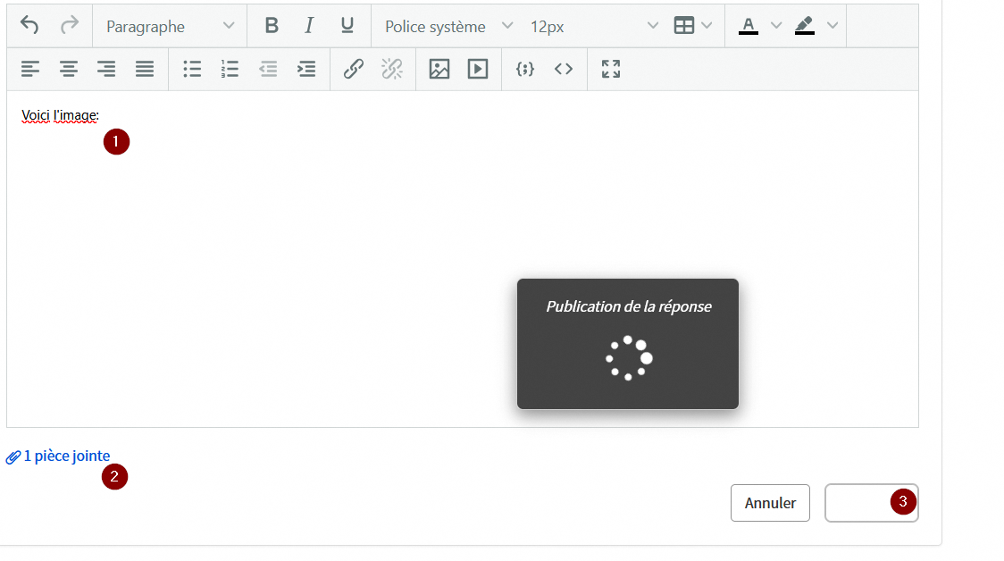 Je clique sur Envoyer, et voilà ce qui se passe. Ca mouline pour toujours, le fichier n'est pas attaché, et je suis banni.