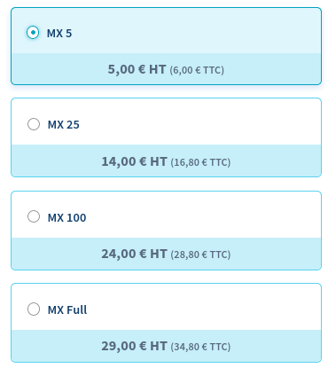 Autre chose : les MX plan proposés sont de 25 ou de 100 mais la documentation sur le site ne parle que des emails pro ou exchange host...