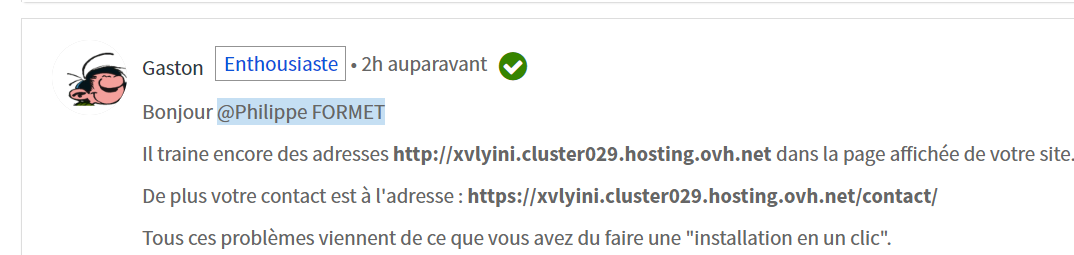 Mais je me demande si le fait d'avoir un forum d'aide aux client d'OVH n'est, lors d'une n ième réorganisation, devenu la cinquième roue de la charrette chez OVH.
