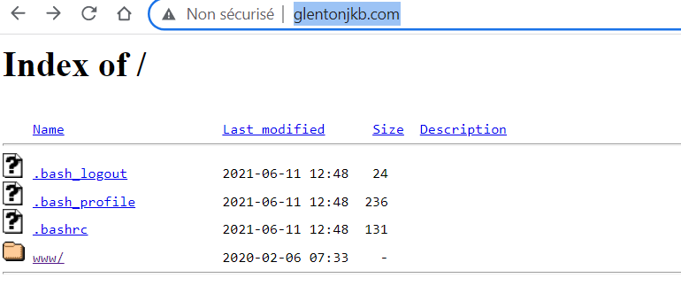 Et si je clique sur le dossier www cela me renvoit bien sur le contenu de mon site, mais avec cette adresse:https://www.glentonjkb.com/www/