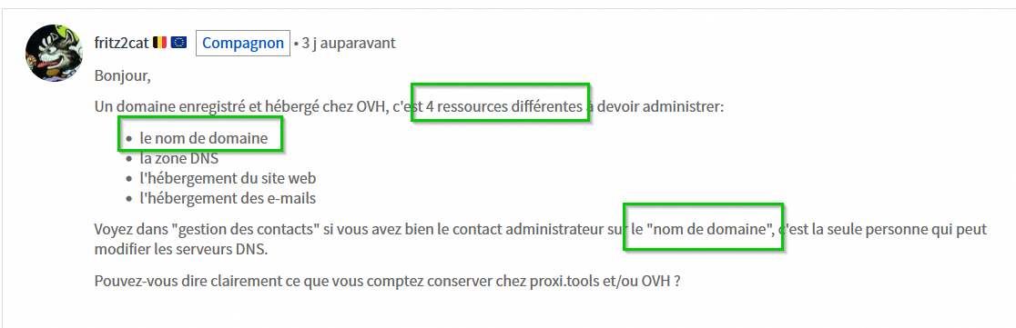 Un domaine enregistré et hébergé chez OVH, c'est 4 ressources différentes à devoir administrer: