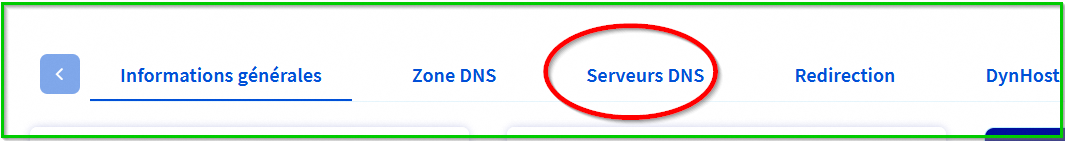 Dans l’interface OVH, dans l’onglet Serveurs DNS, les serveurs affichés sont :