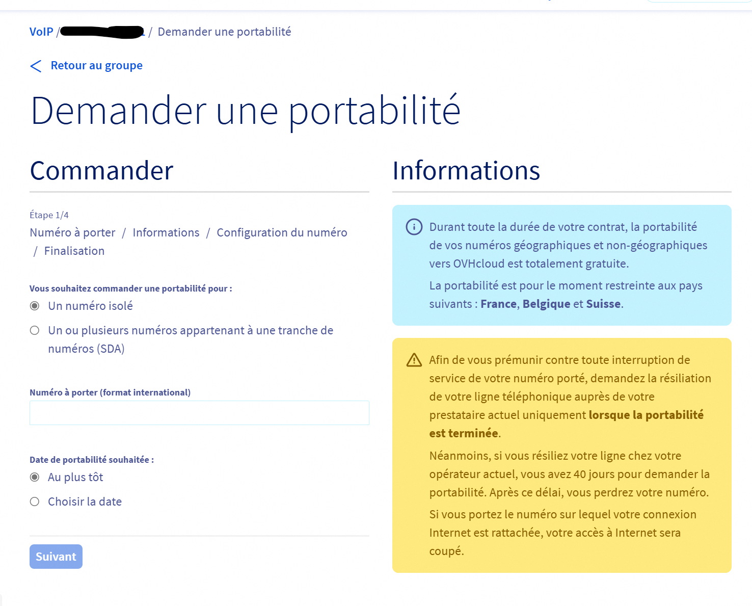 Nouveau chez ovh, j'ai souscrit une offre découverte et demandé la portabilité d'un numéro. La portabilité a lieu aujourd'hui.
