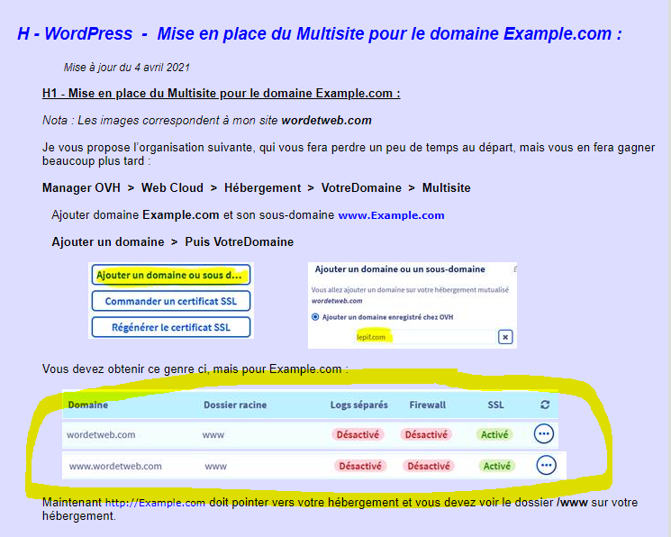 Voir --> **https://www.wordetweb.com/word-et-web/WORDPRESS-guide-installation-de-WordPress-premier-domaine-chez-OVH-FR.htm CMS - WordPress - Guide Installation chez OVH**