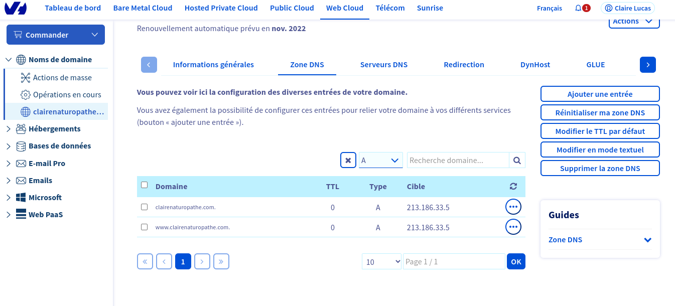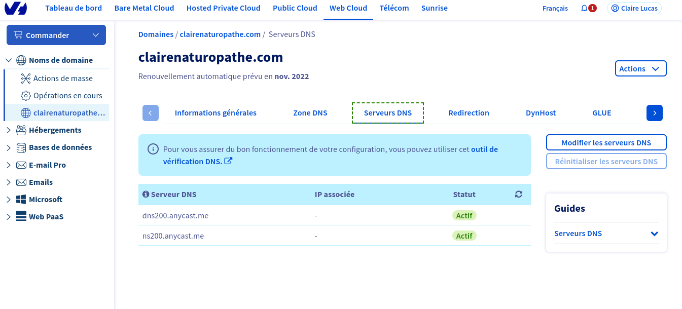 Votre domaine clairenaturopathe.com a bien été créé chez OVH.