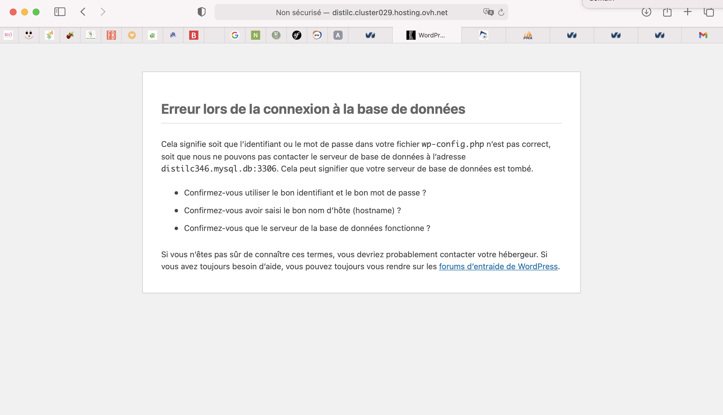 Gaston désolée... mais maintenant sur la page de mon site apparait le message ERREUR DE LA BASE DE DONNEES LORS DE LA CONNEXION... pouvez vous m'aider de nouveau ? merci
