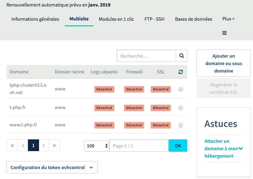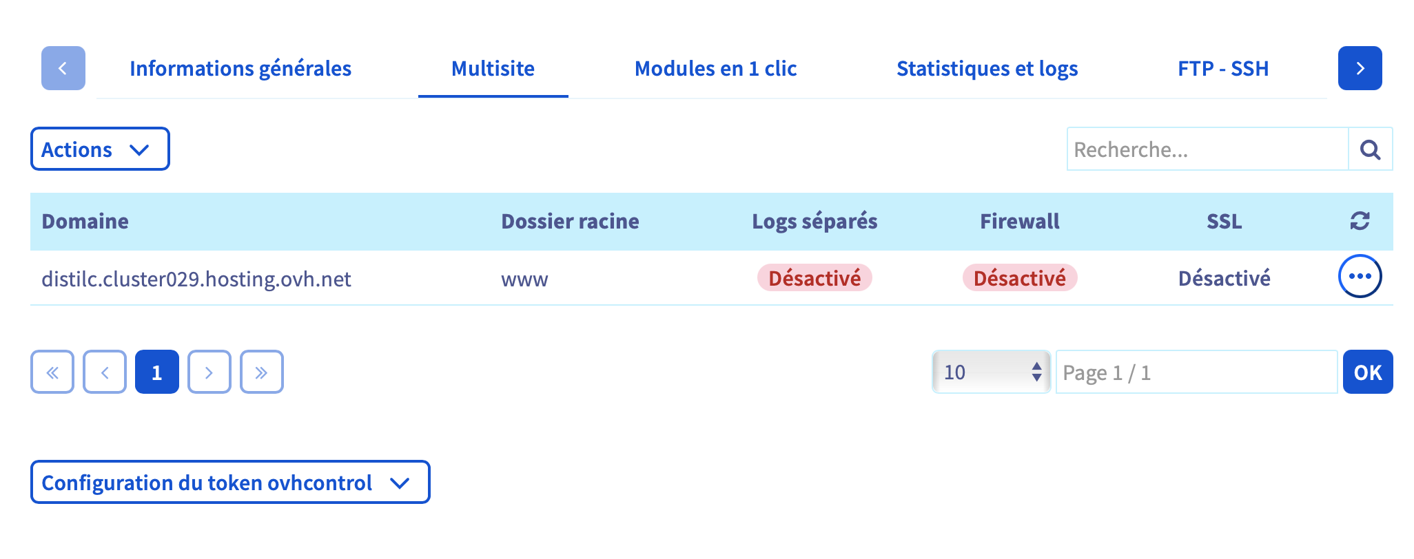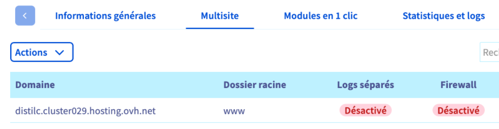 **Manager OVH > Web Cloud > Hébergement > VotreDomaine > Multisite**