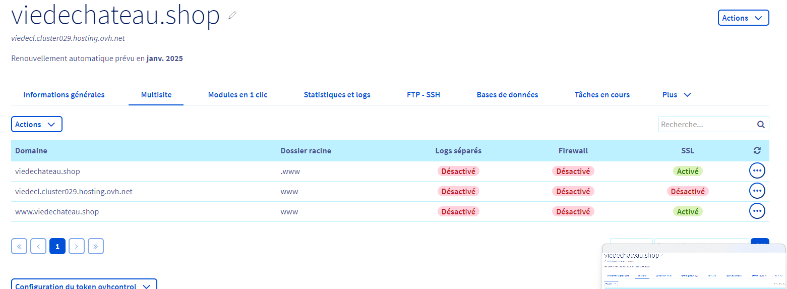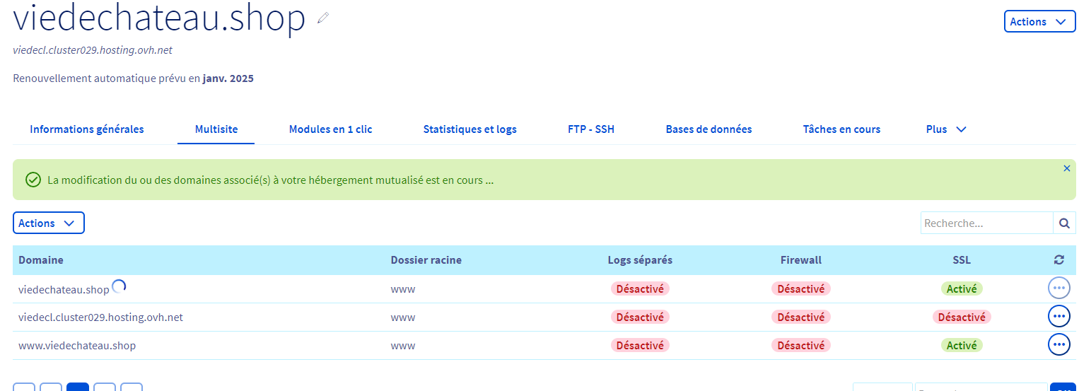 Visiblement je dois repartir à zero mais le site est djà entièrement construit (ma faute) mais tout pointe vers viedecl.cluster029.hosting.ovh.net et pas le domaine viedechateau.shop en Https.