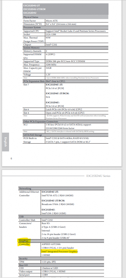 Merci pour votre retour, je ne comprends pas car la documentation du constructeur indique la partie graphique : E3C252D4U-2T.pdf (page 6).