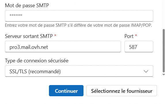 Sortant SMTP: https://pro3.mail.ovh.net/ sur port 587, en Start SSL