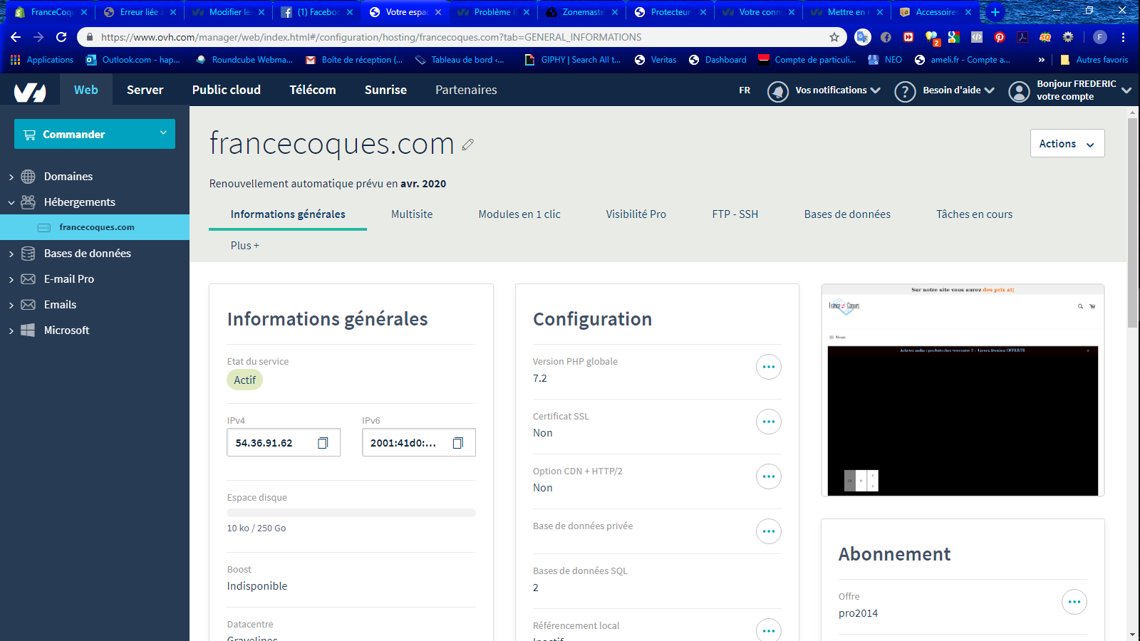 www.francecoques.com c'est OU shopify OU ovh (l'un ou l'autre)